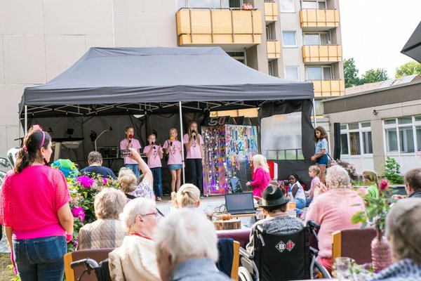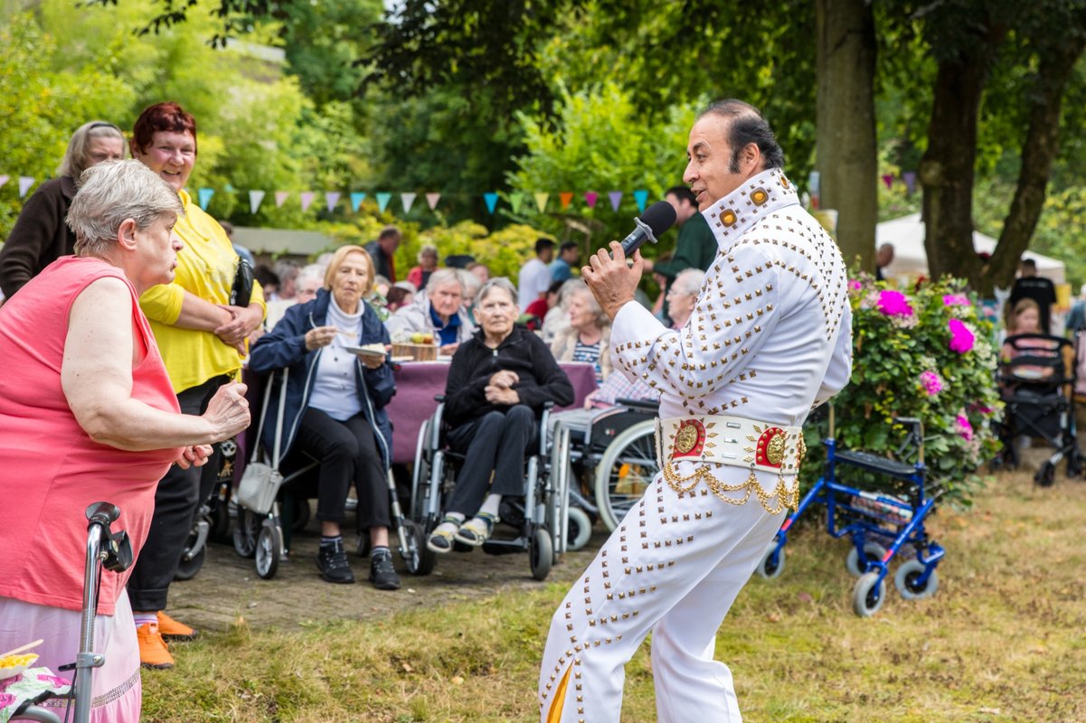 Für beste Unterhaltung sorgten ein Elvis-Imitator, er brachte Rock ´n´ Roll – Feeling in den Garten und eine Country-Sängerin ließ die Bühne beben. Unsere Mitarbeiter*innen brachten Stimmung mit kreativen Tanzeinlagen und Geschichten. Auch ein Kinderchor zauberte unseren Bewohner*innen und Besucher*innen ein Lächeln ins Gesicht.