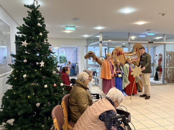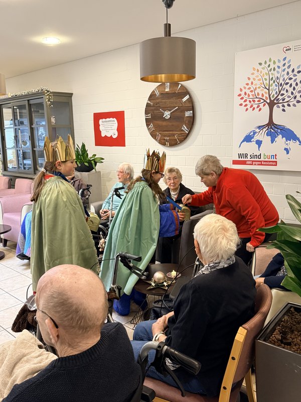 Auch in diesem Jahr besuchten die Sternensinger der Gemeinde St. Joseph mit einem ehrenamtlichen Betreuer unser Haus, um unseren Bewohner*innen Segen zu bringen, mit ihnen Lieder zu singen und die traditionelle Kreidebotschaft anzubringen.